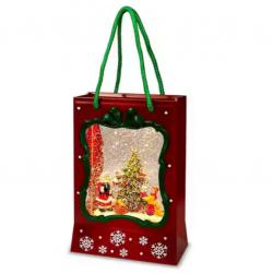 Празнична Коледна декорация във вид на подаръчна чанта със светлини и