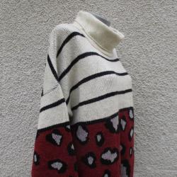 Материя 76% полиакрил, 24% полиестер Европейски размер 50. По българският стандарт това е №56 Точни мерки БЕЗ разтягане: Дължина -75см. шир. при подмишниците 2х66см. шир. при ханша 2х66см. Ръкав от врата –79 см. Нов. Без етикет. Още мои дрехи с големи размери в блога ми: https: //modamaxi. wordpress. com/ |