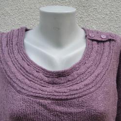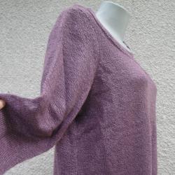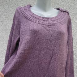 Пуловер със страхотен цвят. Не се наемам, да коментирам, какъв е точния нюанс, защото не знам на какво да го оприлича, но е прекрасен.  Може би, нещо между пепел от рози и тъмен люляк Материя - 93% Акрил +7% Полиестер. Размер на етикета XXL, но отговаря реално на 3XL Точни мерки БЕЗ разтягане: Дължина -74см. шир. при раменете 2х44 см. шир. при подмишниците 2х64 см. шир. при ханша 2х64 см. Ръкав от рамото – 62 см. Нов. Без етикет. Още мои дрехи с големи размери в блога ми: https: //modamaxi. wordpress. com/ |