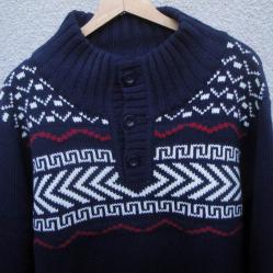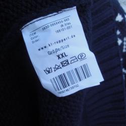 Тъмно син пуловер от 70%Акрил 30%Вълна Размер на етикет – XXL, но отговаря на 3XL Точни мерки БЕЗ разтягане: Дължина -75см. Ширина – 2х65см. (гръдна обиколка 130см.) шир. при раменете 2х55 см. Ръкав от рамото – 68см. Нов. Без етикет. Още мои дрехи с големи размери в блога ми: https: //modamaxi. wordpress. com/ |