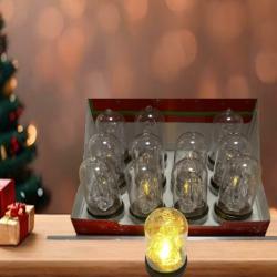 Вид светлина: топла LED;  Материал: стъкло и пластмаса; Захранване: батерии; Размери: компактен и лесно преносим; Вътрешна декорация: прозрачно кристално фигурка - според наличността в склада; Гаранция: 12 месеца; |