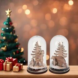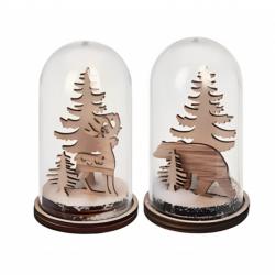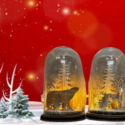 Размер: 11 см (височина);  Материал: Стъкло и дърво; Захранване: Батерии; Тип осветление: LED светлини; Вариант 1: Елхи с елен; Вариант 2: Елхи с бяла мечка; Гаранция: 12 месеца. |