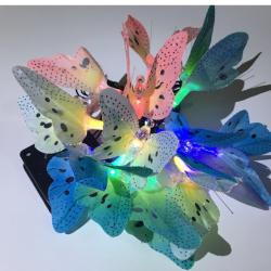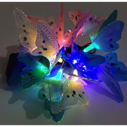 Верига от LED лампички за градината с пеперуди, 12 лампи / Подходящи за закачане на тераси, дървета, прозорци, подове и др.;; Дължина на цялата верига с лампички: 200 см.; Разстояние между отделните пеперуди: 30 см.; Режим на светене: 2 или 8 вида; Гъвкав дизайн под формата на верига; Удобни за пренасяне и съхранение; Регулиране режима на светене; Мощност: 6 W; Дълъг живот на светене; Тегло на LED лампичките: 170 гр.;  Вариант 1 - многоцветен; |
