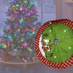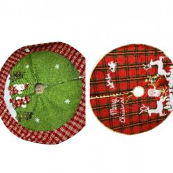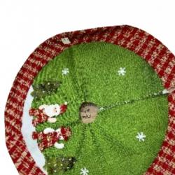 Диаметър: 60 см; Материали: Мека, висококачествена тъкан, устойчива на износване; Употреба: Подходящо за вътрешна употреба, лесно за поддръжка и многократно използване; Закопчаване: С отвор за лесно поставяне около основата на елхата; Вариант 1: Зелен фон с червена и бяла каре бордюра; Вариант 2: Класически червен фон със снежен човек. |