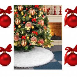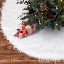 Бяла кръгла плюшена подложка за коледно дърво, елегантна украса за пра..