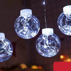 Празнични LED светлини топка с 10 топки в бяла студена и бяла топла с