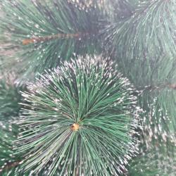 Заснежена коледна елха с бели връхчета и здрава стойка