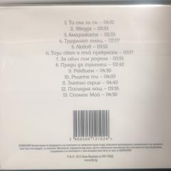 Издава: ЛИ ООД Издаден: 2015 година EAN: 3800500121024 Неразопакован компактдиск Съдържание: 01. Ти сън ли си 02. Звезда 03. Амазонката 04. Трудният танц 05. Любов 06. Този свят е тъй прекрасен 07. За обич съм родена 08. Преди да тръгнеш 09. Реквием 10. Ръцете ти 11. Златно сърце 12. Последна нощ 13. Спомен мой Цената е крайна. Доставка до офис на Спиди - 5 лв / Еконт - 7 лв / БГ пощи с НП - 5,70 лв / чужбина - 8 евро Благодаря за проявения интерес! |