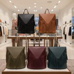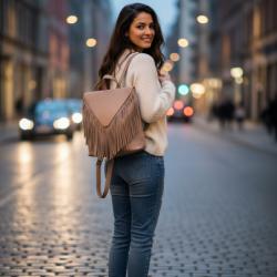 Дамска раница от еко к. с ресни бохо стил, удобство и обем 36 30 16