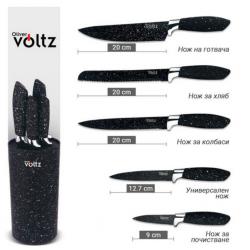 Комплект ножове Voltz с мраморно покритие и стойка Стил, острота и у