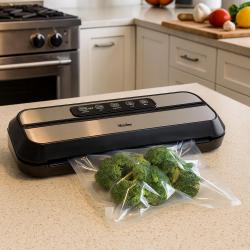 Продукт: Уред за вакуумиране Muhler MV-109 Основен проблем, който решава: Бързо разваляне на храна, загуба на вкус и излишно изхвърляне на продукти Решение: Премахване на въздуха и плътно запечатване, които удължават срока на годност до 5 пъти Функции: Вакуум + запечатване/Само запечатване/Пулс функция/Вакуум за влажни продукти/Вграден нож за рязане на фолио/Външен изход за вакуумиране на контейнери Допълнителни ползи: 15 бр. торбички в комплекта/Икономия на място във фризера/Подходящ за sous-vide Максимална ширина на фолиото: 28 см Мощност при вакуумиране: 60 kPa Мощност: 100W Захранване: 230–240V / 50–60Hz Материал: Пластмаса + метални елементи Цвят: Черен / Сребрист Комплектът включва: Уред Muhler MV-109, 15 бр. вакуум торбички, ръководство |