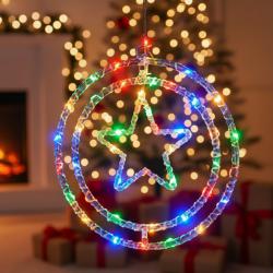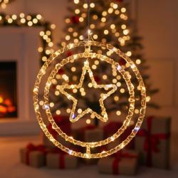 Технически характеристики Материали: висoкокачествен PVC + интегрирани LED диоди Размери: вътрешна звезда 15.5 см; вътрешен ринг 25.5 см; външен ринг 32 см Светлини: топло бяло, студено бяло или многоцветно LED осветление Захранване: 220V Безопасност: ниско нагряване, подходяща за деца Допълнителни елементи: 360° въртящ механизъм Подходящ за: Коледа, Новогодишни празници, Дивали, партита, елха, витрини, стени Опаковка: защитна опаковка, готова за подаряване |