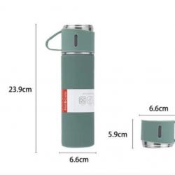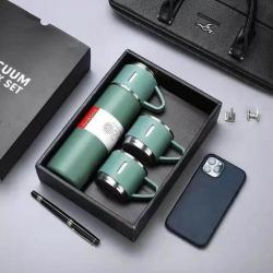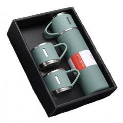 Подаръчен комплект термос с 3 чаши, зелен, розов, сив