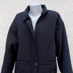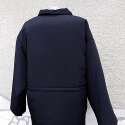Якето е черно, въпреки че на снимките изглежда като тъмно синьо Размерът на етикета е EUR 56. По българският стандарт това е №62, но мисля, че е с един размер по – малко. Реално е за гръдна обиколка 130см. като се има предвид, че отдолу ще се носи с по – топли дрехи. Точни мерки: Дължина -86см. шир. при раменете 2х58см. шир. при подмишниците 2х67см. шир. при ханша 2х68см. Ръкав от рамото – 62см. Ново. Без етикет. Тези и още много други дрехи с големи размери в блога ми: https: //modamaxi. wordpress. com/ |