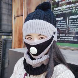 Модна дамска шапка с висока яка и маска за лице с филтър за дишане