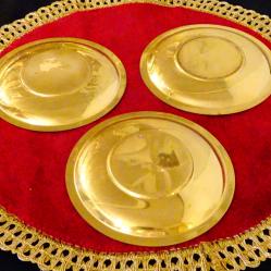 Стари чинии за хапки, гурме, подложни чинии за чаши, чинии за десерт, изработени от масивен бронзДиаметър 13 см., височина 1 см., тегло на всяка 70 гр. Налични 3 броя, цена за всички 10 лв. /5.12€