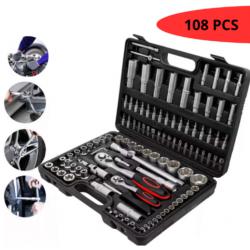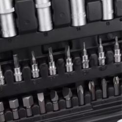 Материал: закалена стомана + хромирано покритие; Задвижване: 1/4” и 1/2”; Тресчотки: 2 бр. – бързо освобождаване, обратими; Размери куфар: 46 × 33 × 9 см; Батерии: не са необходими; 1/4” серия: 18 вложки за битове: SL, PH, PZ, HEX, Torx (T8–T30); 13 вложки: 4–14 мм; 8 дълбоки вложки: 6–13 мм; 2 удължители: 2”, 3”; 1 универсална връзка; 1 тресчотка 1/4”; 5 Torx вложки: E4–E8 1 Т-дръжка; 1 дръжка за въртене: 6”; 1/2” серия: 17 вложки: 10–32 мм; 5 дълбоки вложки: 14–22 мм; 2 удължители: 5”, 10”; |