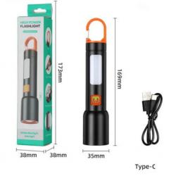 Презареждащ се LED фенер с висока яркост USB Type-c, мащабируем лъч,