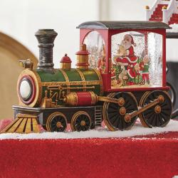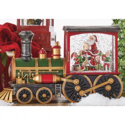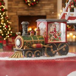 Коледна декоративна композиция Влакът на Дядо Коледа с LED светлина,