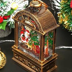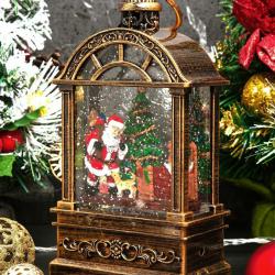 Коледен фенер с музика и снежен ефект празнична лампа с LED светлина