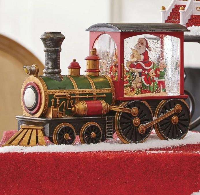 Коледна декоративна композиция Влакът на Дядо Коледа с LED светлина, в..