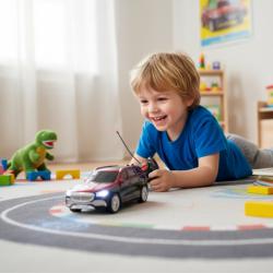 Материали: Здрава пластмаса, гумирани колела; Размери: приблизително 25 x 11 см; Цветове / светлини: Черен цвят, без светлини; Безопасност / стандарт: Подходяща за детска игра; Допълнителни елементи: Дистанционно управление, кабел за зареждане; Подходящ за деца: Над 3 години (идеален и за 6+); Опаковка / подаръчна кутия: Подходяща за директно поставяне под елхата. |