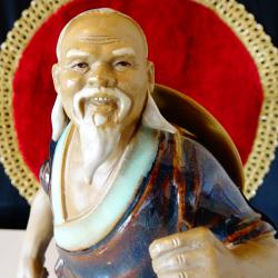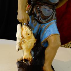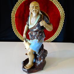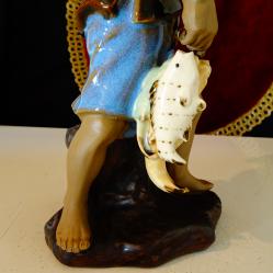 Стара китайска порцеланова статуетка, фигура на Рибар, който щастлив от успешния си риболов се прибира у дома с три големи рибки. Фигурата - Chinese Mudman Fisherman Shiwan е ръчно изработена през 50-те години на миналия век, толкова реалистично, че е като жива и сякаш предава радостното настроение на един силен и свободен човек. Има маркировка. Височина 21 см., диаметър 11 см., тегло 457 гр.