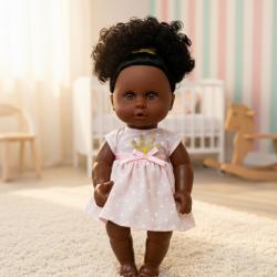 Материали: Метал, пластмаса и текстил; Размери: 12 инча (около 30 см); Цветове: Разнообразие от дрехи и аксесоари; Варианти: бебе с рокля на точки; бебе с пижама с коала; бебе с гащеризон и лигавник; Безопасност / стандарт: Безопасна за деца на възраст 3+; Допълнителни елементи: Включва шише и подвижни ръце и крака; Подходяща за деца: От 3 години нагоре; Опаковка / подаръчна кутия: Удобна и лесна за опаковане кутия, идеална за подарък. |