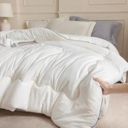 Размер: 160 x 200 см (+/- 3 см); Цвят: Бял; Пълнеж: 95% овча вълна, 5% полиестер; Покритие: 100% полиестер (тегло 110 г/м2); Тегло: Приблизително 2,25 кг; Цел: Целогодишно използване, особено за есенния и зимния сезон; Измиване: Машинно при 30°C на деликатен цикъл. |