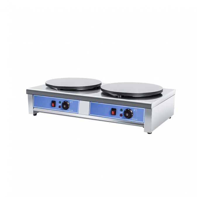 Двоен котлон за палачинки е предназначен за професионални кухни, сладкарници, ресторанти, заведения за закуска и вериги за бързо хранене. Машината е надеждна, ефективна и улеснява бързото приготвяне на качествени палачинки. Двойната плоча позволява едновременно печене на две порции. Плочата е с регулируем термостат (50°C – 300°C) за лесна адаптация към различни рецепти и видове тесто. Контролите са интуитивни, а незалепващото покритие намалява необходимостта от мазнини и улеснява почистването. Това спестява време и осигурява постоянно високо качество на порциите. Корпусът е изработен от неръждаема стомана, устойчив на корозия и проектиран за интензивна професионална употреба. Високоефективните нагреватели осигуряват бързо загряване и постоянна температура. Котлонът се предлага в електрическа и газова версия, а компактният му дизайн улеснява поддръжката. Закупувайки го от MixHoReCa. com, получавате гарантирано качество, дълъг живот и професионално обслужване, което оптимизира работния процес и увеличава продуктивността. Технически характеристики: Размери: 90 х 54 х 23 см Тегло: 27 кг Мощност: 6 kW Напрежение: 220-240 V / 50-60 Hz |