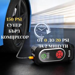 Ако се намирате на пътя и неочаквано ви спре колата поради спукано гума или празен акумулатор, няма нужда да се паникьосвате. Този портативен компресор за гуми и стартер за автомобил е решението, което ви трябва. С максимално налягане от 150 PSI, той може да надуе гума от 0 до 20 PSI само за 2 минути, а в допълнение предлага и стартиране на колата с помощта на вградените кабели за акумулатор. Максимално налягане: 150 PSI; Надуване от 0 до 20 PSI за 2 минути; Размери: 18 x 9 x 8 см; Автомобилен стартер с кабели за акумулатор; Вградена литиево-йонна батерия с възможност за зареждане през USB; Цифров дисплей с лесно четими показатели за налягане. |