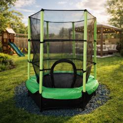 Мини батут с мрежа за безопасност Компактен и забавен избор за деца