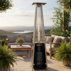 Мощност: 13 kW / 46 000 BTUВид газ: пропан-бутан, пропан; Разход на газ: 945 г/час; Налягане на газа: 37 mbar; Запалване: електронно; Регулиране на мощността: да; Максимален газов цилиндър: 15 кг; Материали / корпус: прахово боядисана стомана; Размери: височина 227 см; ширина на дъното 54 см; ширина на върха 46 см; Тегло: 22 кг; Безопасност: защита против накланяне, защита от изтичане; Аксесоари: маркуч, редуктор с щракване, защитен калъф; Батерия: 1× батерия за електронното запалване (тип AA, не е включена). |