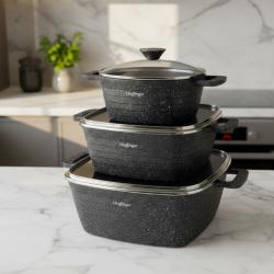 Комплект тенджери Cheffinger от 3 части с мраморно покритие и капаци