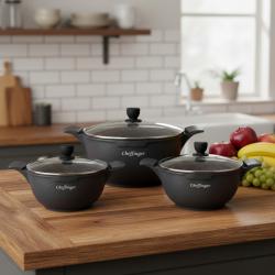 Комплект от 3 тенджери Cheffinger с мраморно покритие 20 24 28 см с ка