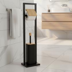 Материал: метал и дърво; Функции: тоалетна четка + държач за тоалетна хартия; Размери: 20 × 20 × 72,3 см; Монтаж: свободно стояща, без пробиване; Поддръжка / почистване: лесно почистване с влажна кърпа; Устойчивост: стабилна конструкция за ежедневна употреба. |
