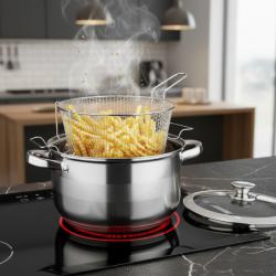 Тенджера с кошница за пържене и стъклен капак Cheffinger 24 см ино