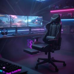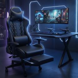 Геймърски стол с прибираща се подложка за крака и функция за масаж - ч