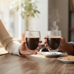 Материал: боросиликатно стъкло; Размери / вместимост: 250 мл, приблизителни размери 9 × 8 см; Температурна устойчивост: подходящи за топли и студени напитки; Здравина: двойни стени за по-добра изолация; Почистване: подходящи за съдомиялна машина; Допълнителни функции: термоизолация, двойно дъно, комфортен допир. |