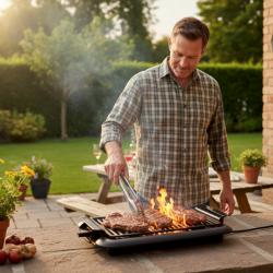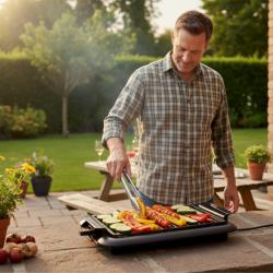 Мощност: 1500W; Напрежение: 230V ~ 50/60Hz; Температура / режими: 5 степени, регулируем термостат; Корпус: масивен лят алуминий; Защита: стабилна електрическа работа, безопасна употреба; Размери на повърхността за печене: приблизително 46,5 x 33,5 см; Употреба: закрито и открито; Допълнителни функции: лесно почистване, равномерно изпичане. |