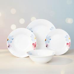 Технически характеристики: 6 бр. плоски чинии (22.86 см); 6 бр. супени чинии (20.32 см); 6 бр. салатни чинии (15.24 см); 6 бр. плоски чинии (19.05 см); Материал: порцелан; Подходящ за съдомиялна машина. |