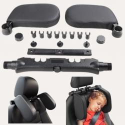 Материали: ABS, изкуствена кожа (PU), мемори пяна Размери: 38 см × 13 см × 24 см Регулируема широчина: 26 – 30,5 см Разстояние между пръчките (съвместимост): 7 – 16 см Завъртане: 180° за лесно съхранение и позициониране Съвместимост: Подходяща за седалки с отделни облегалки за глава; не е подходяща за фиксирани облегалки |