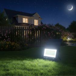 Технически характеристики на соларна лампа – мощен външен прожектор със сензор за здрач, IP67 Брой LED: 126 високоефективни диода Защита: IP67 (водоустойчив и прахоустойчив) Захранване: соларен панел с вграден акумулатор (литиева батерия) Функции: автоматично включване чрез сензор за здрач, режими на работа (висока/икономична яркост и евентуално режим с дистанционно управление) Приложение: външно осветление за двор, градина, вход, тераса, алея, гараж Размери: приблизително 28 cm x 21 cm |