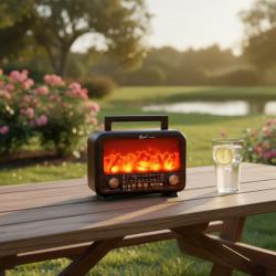 Соларно преносимо радио Fp-2393-s - тип камина с горящи пламъци