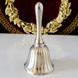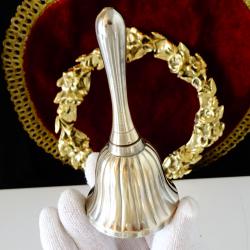 Стара камбанка, звънец, звънче, майсторска ръчна изработка от масивен бронз с ефектен релеф на фистони. От вън е посребрена с висока проба сребро. Звъни празнично, звънко, приятно. Височина 10 см., диаметър 5 см., тегло 90 гр.