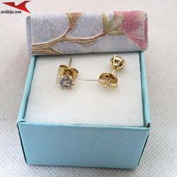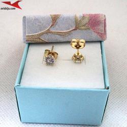 http: //www. avisbiju. com/ 2141861 Цена: €3.50 / 6.85лв. Обеци със златно покритие: • Продукт: обеци • Състояние: ново • Материал: екологична мед 14К позлатено • Камъни: Synthetic CZ • Размер на обеците – 6*6 mm • Грамаж: 1.5гр. • Тип закопчаване: винт |