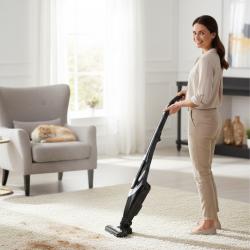 Всмукателна мощност: 8 kPa Напрежение и батерия: 22.2 V Li-ion Време на работа: до 40 минути при стандартен режим; до 55 минути икономичен режим (според употреба) Капацитет на контейнера: 0,5 литра Размери: 26,2 x 15,8 x 115 см Тегло: 4,2 кг Технология: циклонна система за по-добро отделяне на праха Характеристики: без торба, безжична употреба, тиха работа, лека конструкция |