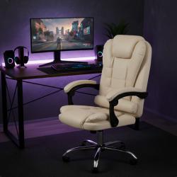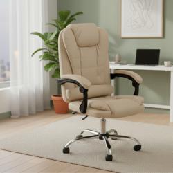 Ергономичен офис стол с лумбална опора от еко кожа в бежов цвят комф