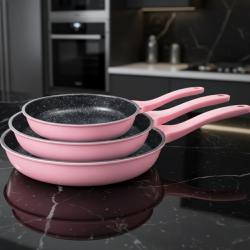 Комплект тигани Cheffinger розово с мраморно покритие - 3 части за вся..