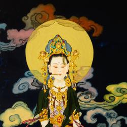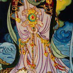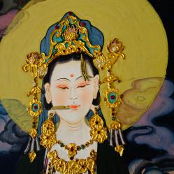 Японска картина богиня Guanyin, злато, релеф.